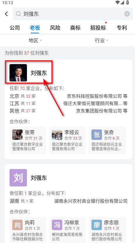 2.然后直接在这里输入你要查的老板名字