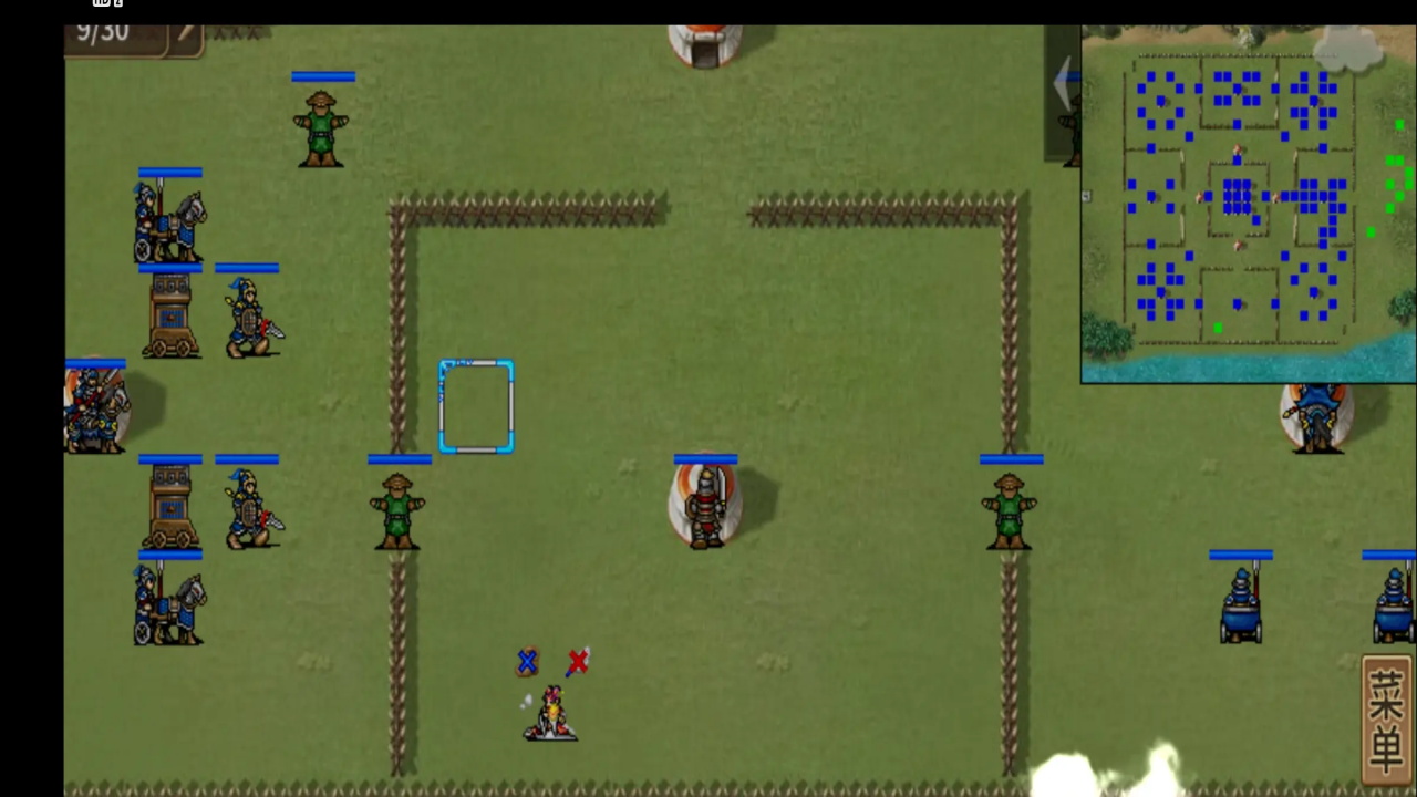 8.我军进入左上角方格后,敌军伏兵出现,把我军人物围在其中,全部击破方格内敌军方能通行。