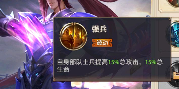 再加上触发五子良将羁绊的主将都有一个共同的技能——强兵,能够提高自身部队的总攻击和总生命,综合考虑攻速之类的因素,两个部队士兵的强度约等于主将的作用。