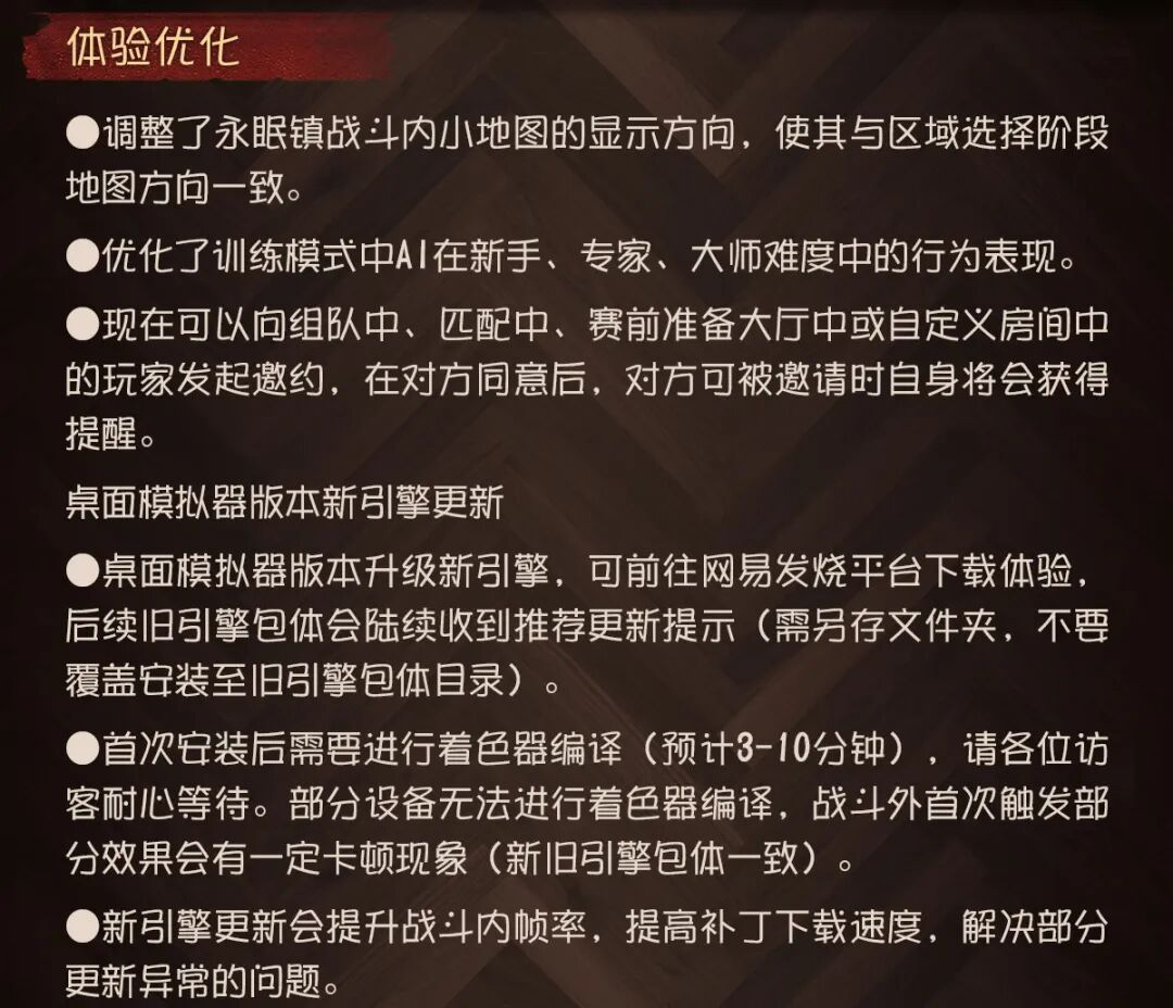 本周将采用不停服维护方式。7点30分服务器进入不停服维护状态,届时各位访客依旧可以体验大部分玩法和功能,包括但不限于:匹配、自定义、活动、推理之径等,商城的物品可以正常购买;