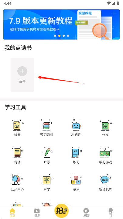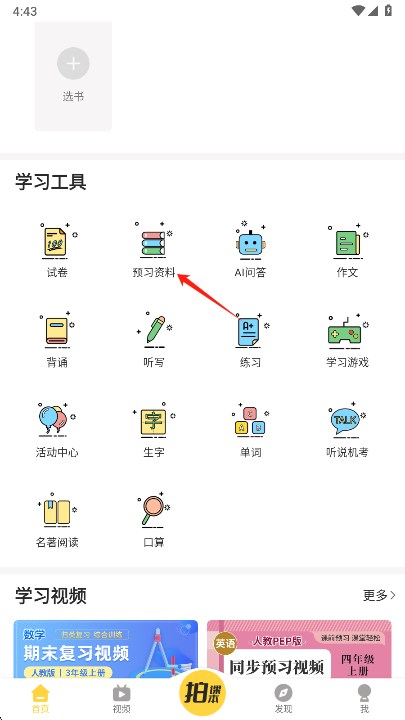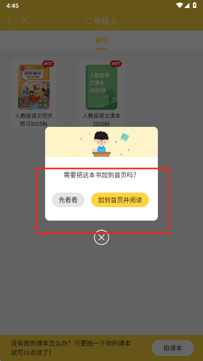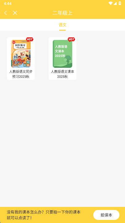 3、然后里面有很多课本,找到你上课学习的那本,或者是通过拍课本功能直接添加。