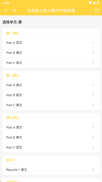 4、选择完成后就会进入该课本的单元目录中,你可以任意选择一个单元章节资料