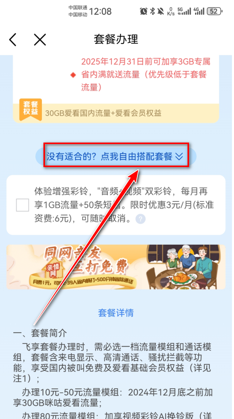 3.点击自由搭配套餐。