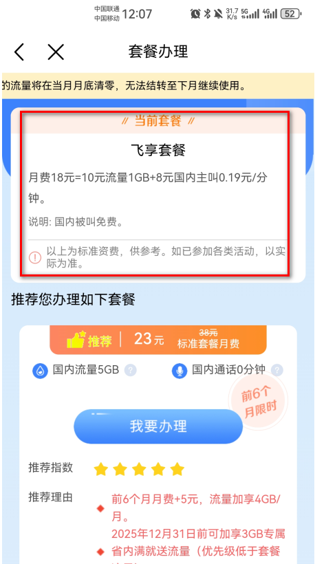 2.显示这是当前的套餐。