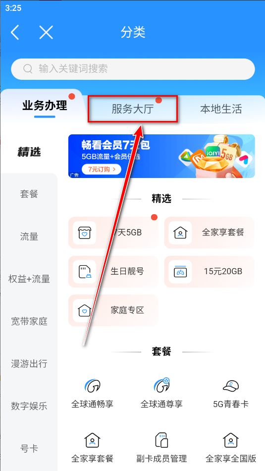 2.点击服务大厅