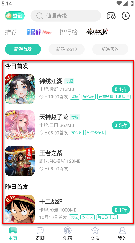 2.可以查看每天首发的新游。