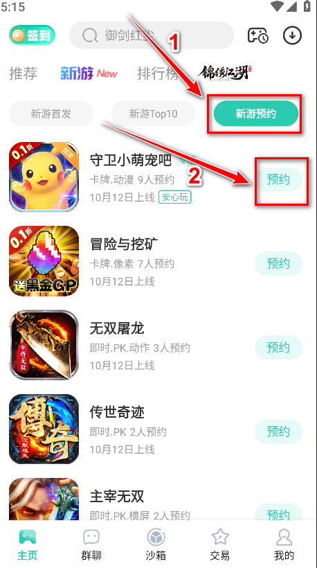 3.点击新游预约,再点击我们喜欢的游戏后面的预约。如果游戏上线,我们就可以知道啦。