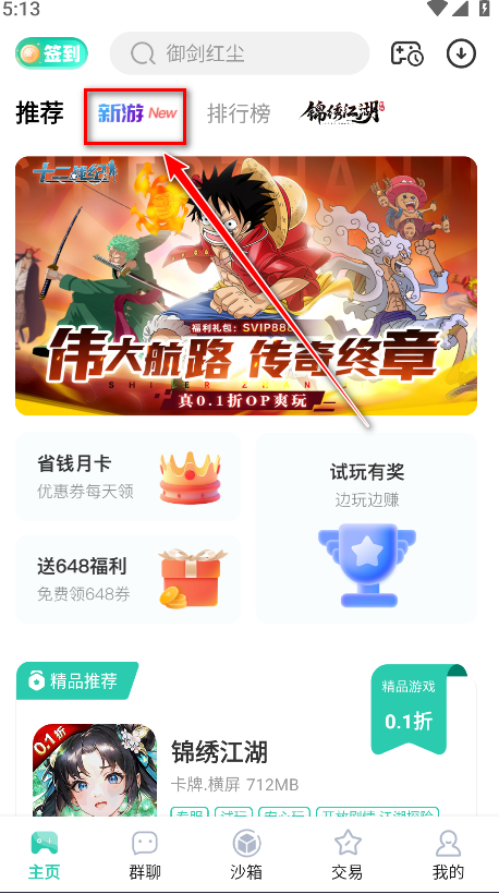 1.打开爱趣游戏,点击新游。