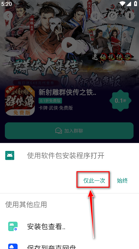 8.点击仅此一次。