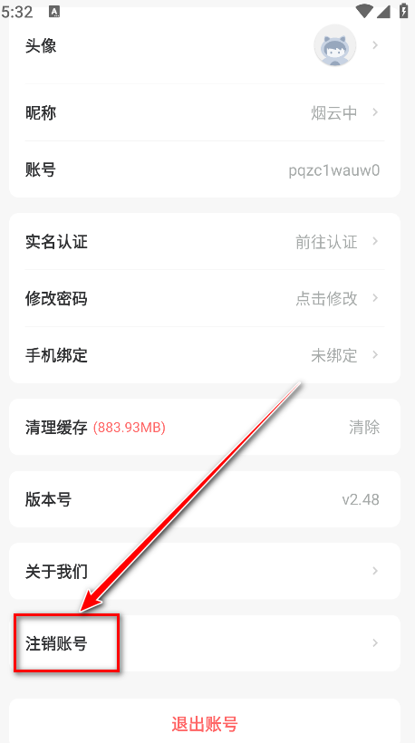 3.点击注销账号。