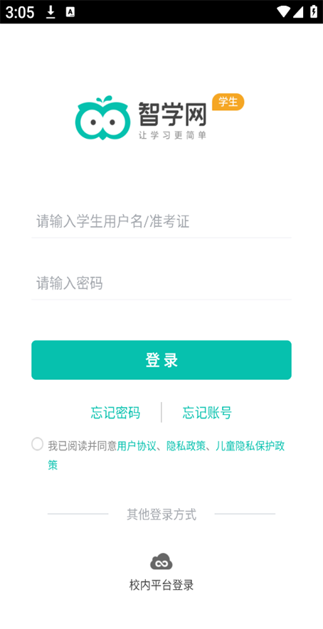 1、打开手机的智学网,进入到账号登录页面,点击右上角的注册
