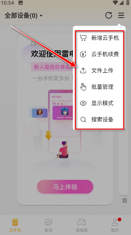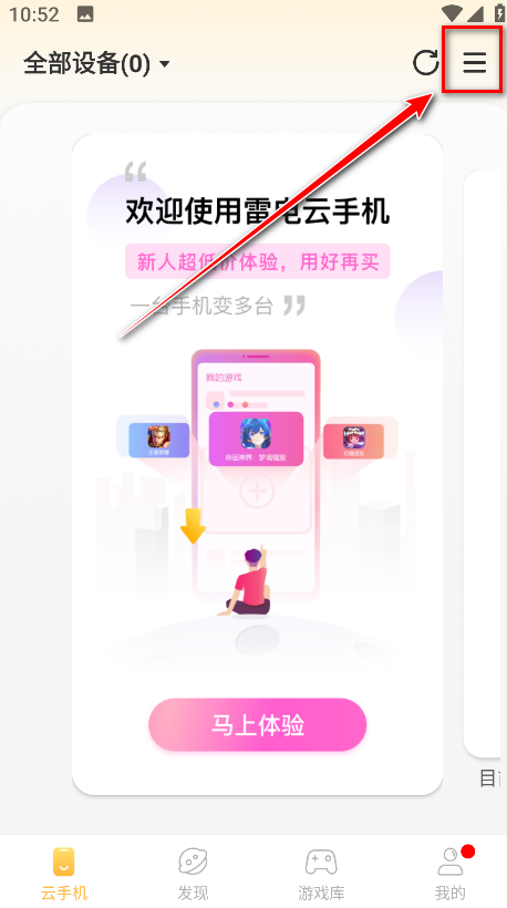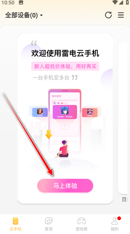 1.打开雷电云手机,点击马上体验。