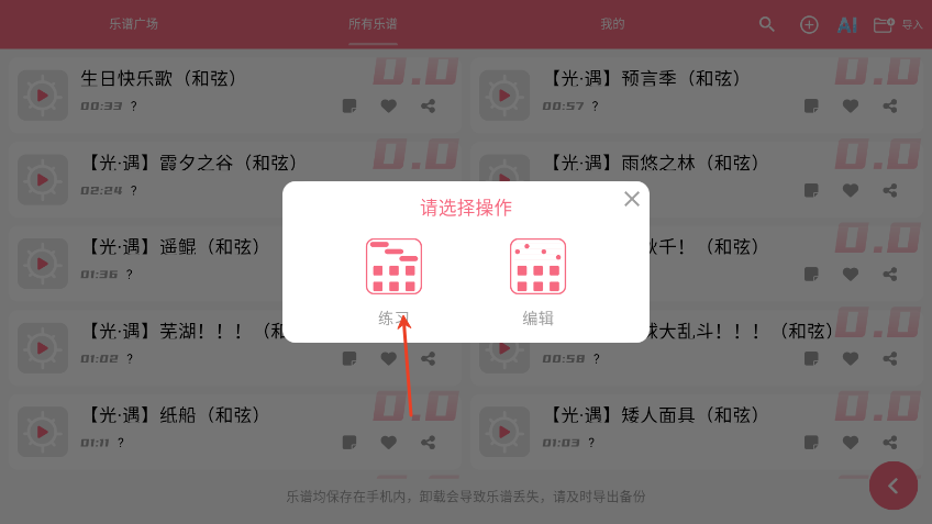 1、当您练习高难度的歌曲时,您可以加载乐谱后,在练习界面点击右下角“循环练习按钮”,进入循环练习设置界面。
