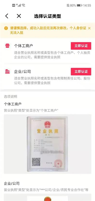 6、点击“立即认证”,根据要求填写资质信息,提交后等待平台审核。平台审核通过后,要对对私银行卡号+银行预留手机号或对公账户进行打款验证。只有个体工商户可以用对私银行账户验证,且开户主体应与营业执照经营者一致。