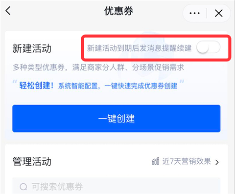 续期提醒会在活动结束后通过站内信发送,商家可选开启或关闭。