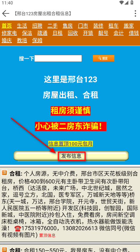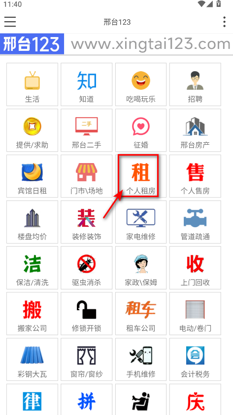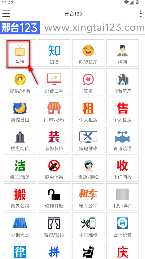1、在本站下载安装邢台123打开,可以看到首页汇集了全面的本地服务
