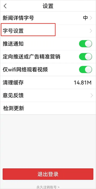 3.点击【字号设置】。