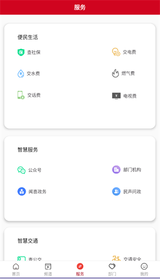 3、点击服务,有缴费,查社保,查公交、火车票等。