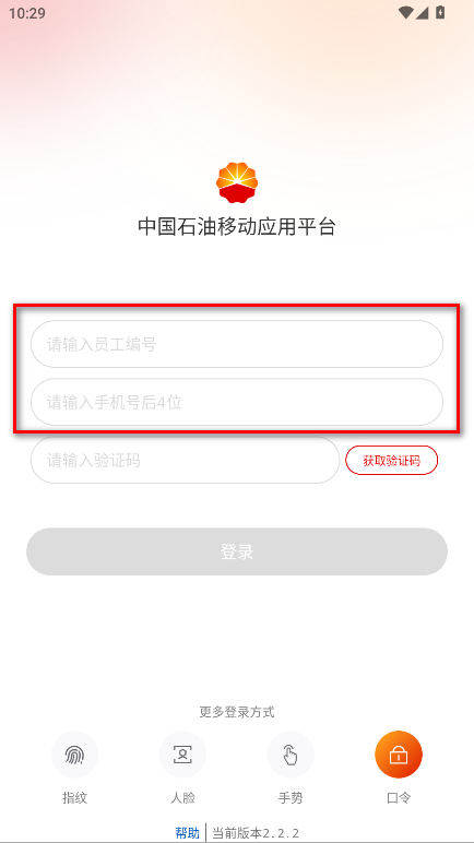 1.首先请在本站下载安装并打开最新版的移动平台app,可以看到本软件支持手机号验证码、指纹、人脸、手势、口令登录。