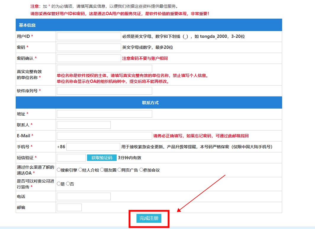 2.根据提示填写完毕后,点击最下面的“完成注册”,会出现注册的信息。
