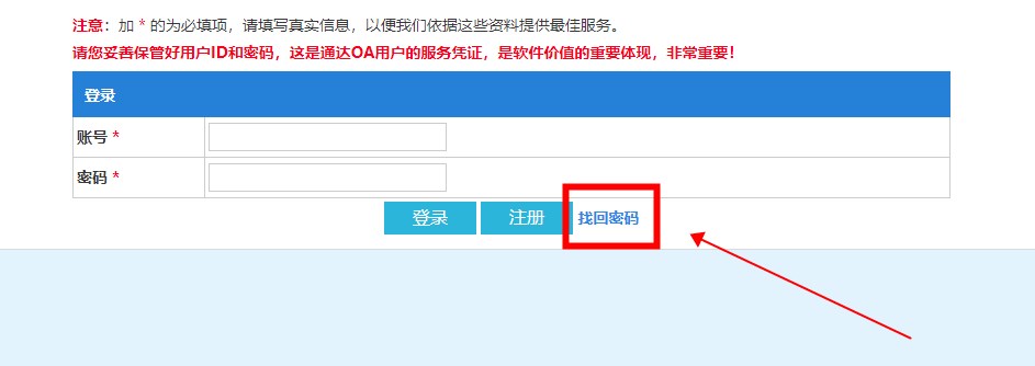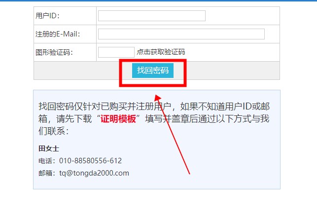 1.首先需要进入通达OA用户服务区官网平台。(https://www.tongda2000.com/member/user/login.php),点击找回密码按钮。