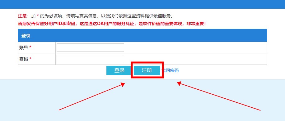 1.首先需要进入通达OA用户服务区官网平台。(https://www.tongda2000.com/member/user/login.php),点击注册按钮。