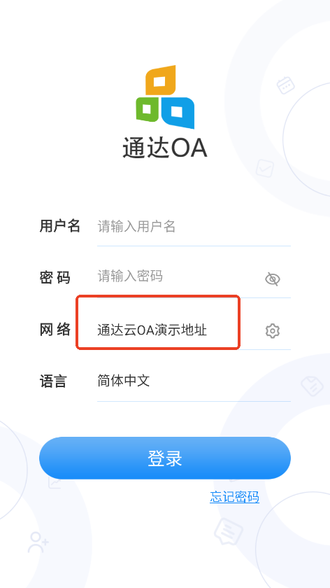 1、用户在本站下载安装该软件后,打开OA精灵移动版,进入登录界面;
