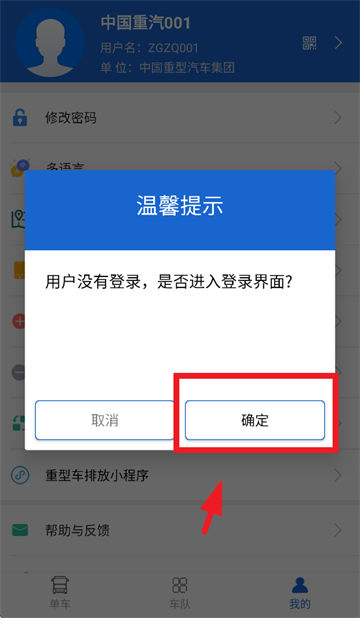 1.下载安装并打开重汽智能通app,进入单车首页后,点击我的