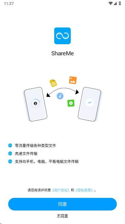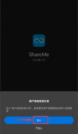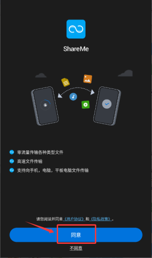 1、启动ShareMe应用,于页面底部点击同意用户协议条款。