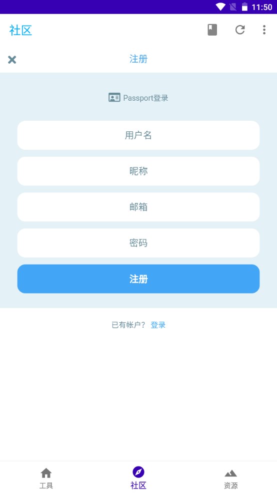 3.输入自定义用户名、昵称、密码,以及填写邮箱,点击注册即可。
