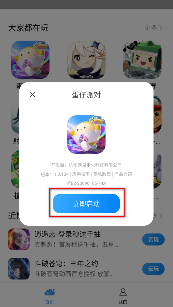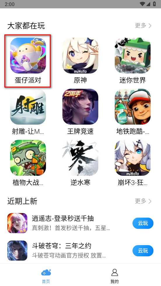 1.打开小米云游戏,并找到自己想要玩的游戏,这里以蛋仔派对为例,我们点击它