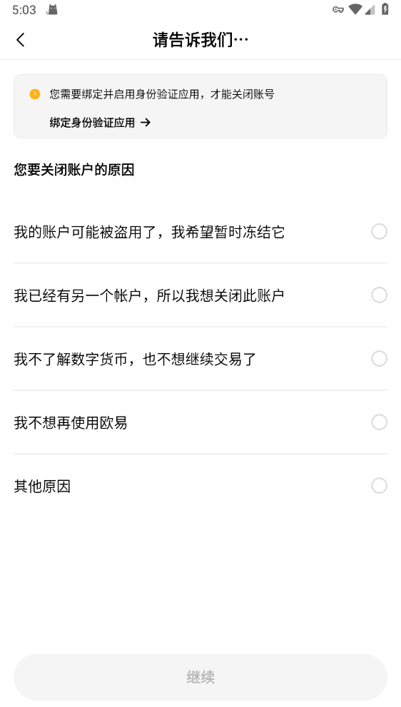 选择关闭账号