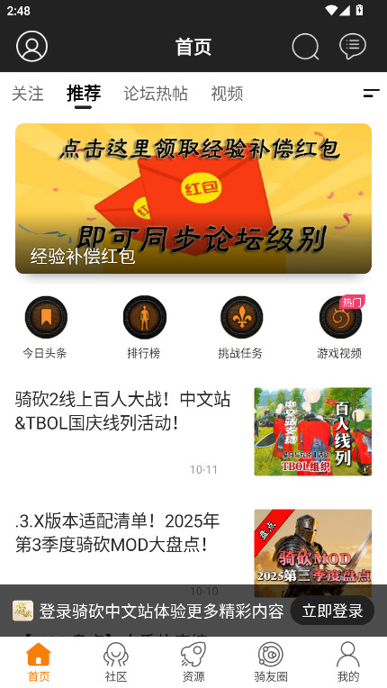 骑砍中文站app不仅仅是一个游戏资讯站,它是国内影响力超群的骑马与砍杀系列游戏的官方指定精神家园,更是无数骑友们十三年来积攒的情怀仓库。它提供的游戏资讯比你老板的催促邮件还及时,汉化、MOD、游戏下载一应俱全,简直是为我们这种随时想逃离现实的上班族准备的午休时光机。这里的资讯覆盖了骑砍全系列,无论你是怀旧的初代老兵,还是追逐新世代的霸主玩家,都能找到属于你的那片瓦兰迪亚平原。更绝的是,那海量的MOD资源,简直就是你逃避现实的定制通道。