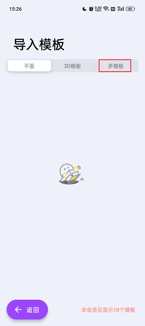 3、选择点击多模版选项,然后用手指向下滑动就可以添加一个模板;