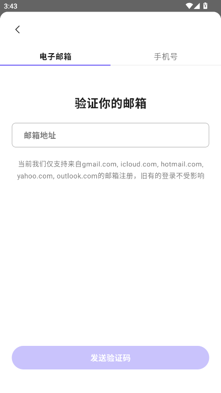3.请输入邮箱地址,接着点击发送验证码,然后按照软件的提示登录即可。