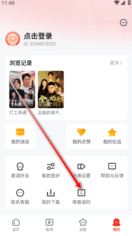 2.点击填邀请码。