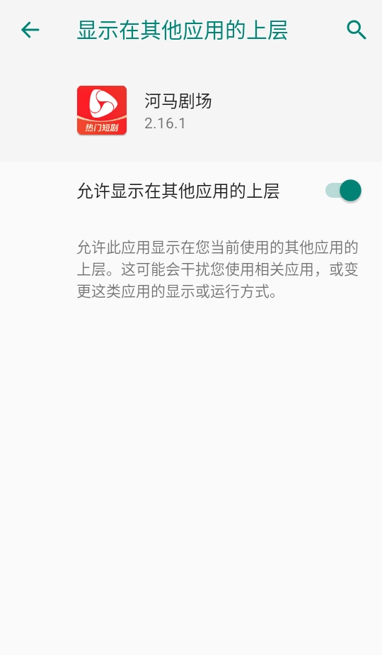 4.然后在应用详情页面中允许上层显示。