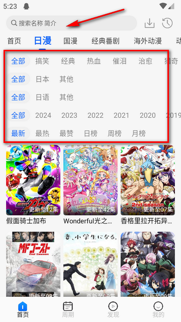 2、最顶端的搜索框可以输入关键词搜索动漫。