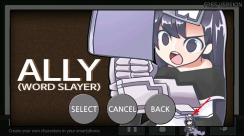3.点击选中的角色(如红色箭头所指的女性角色),进入角色详情界面,显示角色名称为“ALLY(WORD SLAYER)”。
