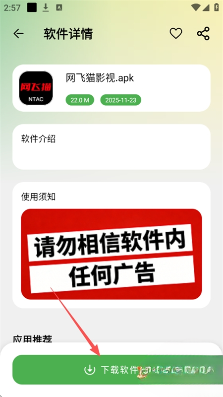 3、再接着任意选择一款应用,这里以【网飞猫影视】为例,直接点击【下载】