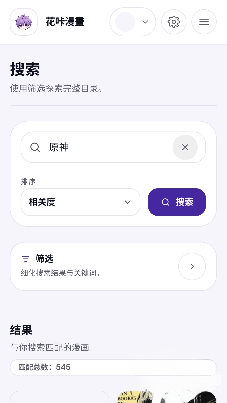 3. 拥有强大精准的搜索功能,按名称、作者或题材等关键词快速检索,一键找到心仪漫画。