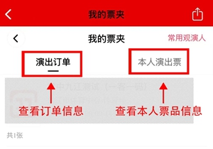 【演出订单】里可以查看【购票订单信息】【本人演出票】里可以查看【本人票品信息】