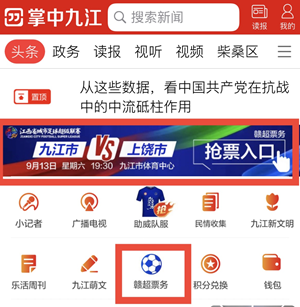 1、在掌中九江app头条页面点击“赣超票务”进入活动页面。