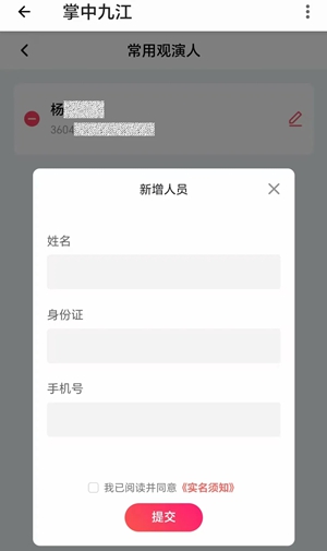 2、进入页面后,点击“常用观演人”可添加预填实名观赛人信息,每张票均需对应一个实名身份。