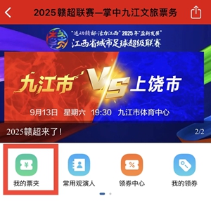 下载【掌中九江】,登录点击【赣超票务】进入购票页面,点击【我的票夹】