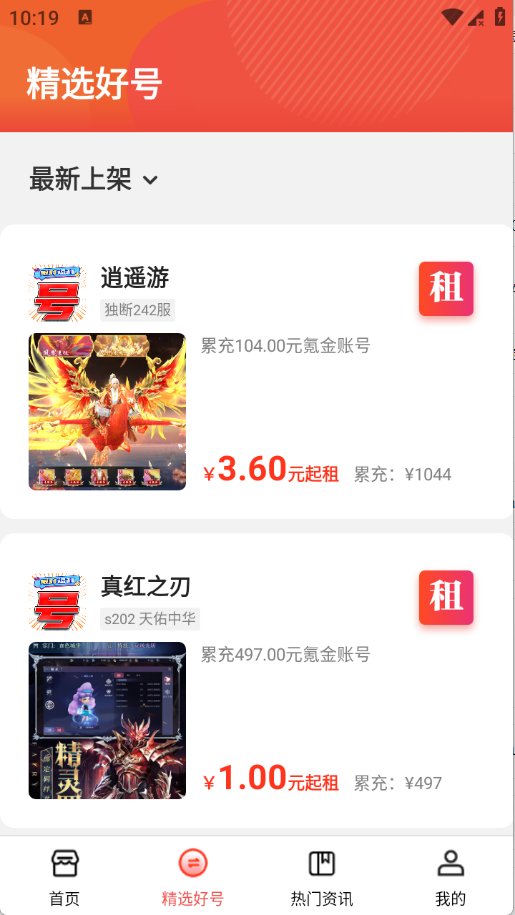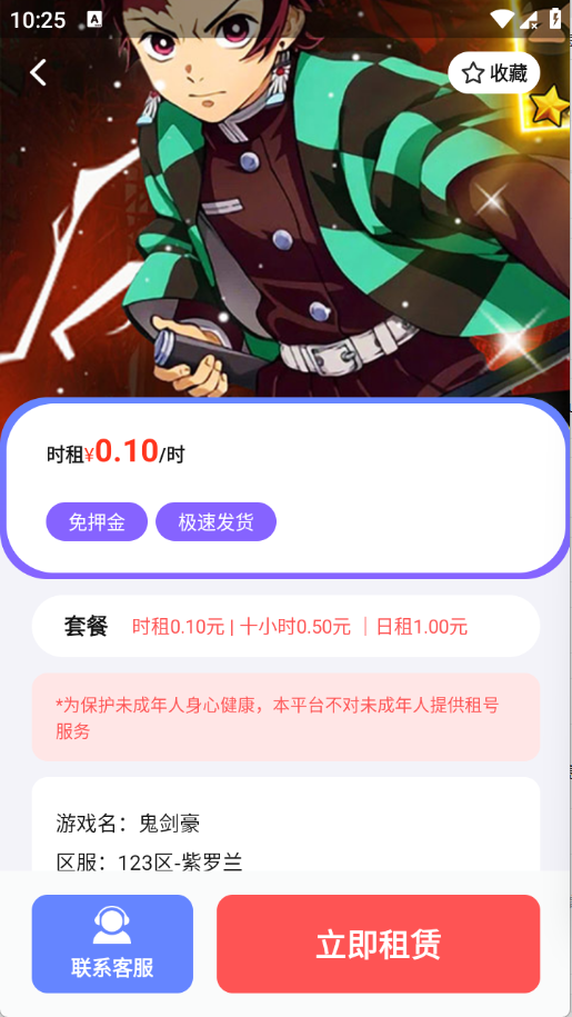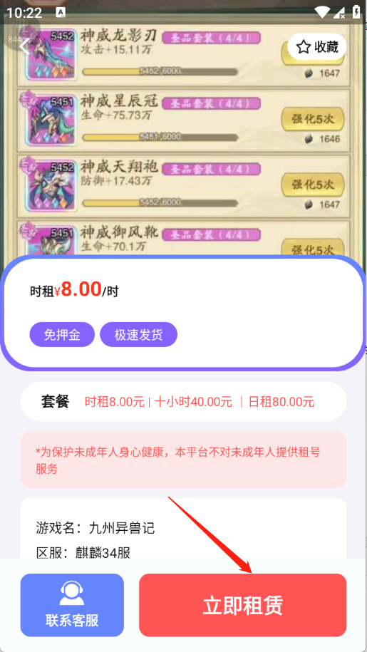 4、玩家点开需要的游戏账号进入详情页,点击立即租赁即可。