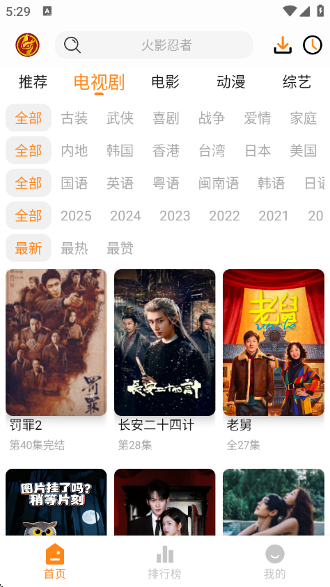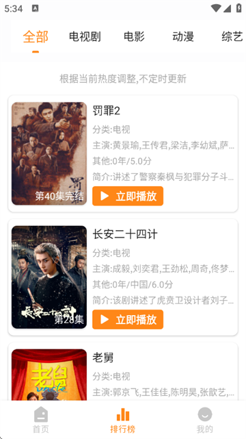 4、点击底部的排行榜,查看当前热门的影视剧。