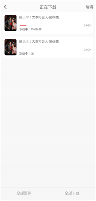 5.在这里也能看到缓存进度以及观看已经下载好的剧集,支持删除