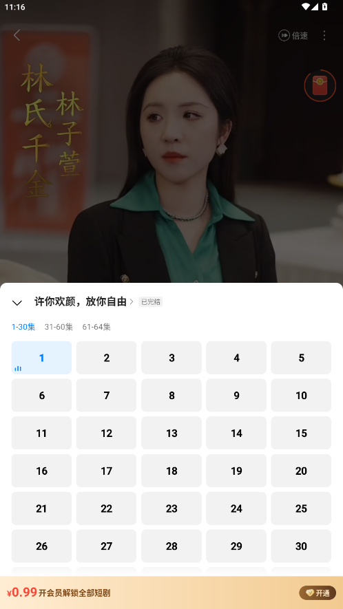 5、点击下方还可以查看全部剧集,都能免费解锁观看