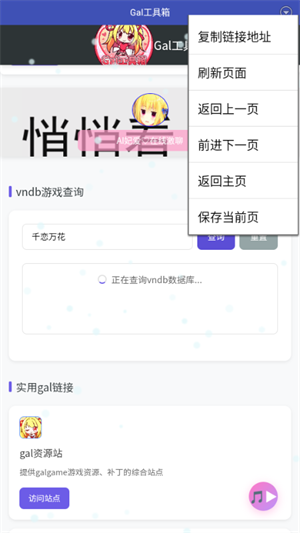 Gal 工具箱,是专为美少女游戏(galgame)玩家打造的一站式游戏查询与管理工具。平台内置海量 galgame 资料库,支持按题材、画风、剧情、厂商等多维度精准筛选,帮你快速找到符合口味的作品。应用内提供详尽的游戏详情,包括剧情简介、角色设定、制作阵容、玩家评分与攻略指南,信息全面且实时更新。